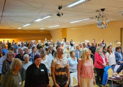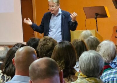 23 people made a decision for Jesus, and powerful miracles happened: During tumor surgery, a woman had a nerve in her eye severed, leaving her eye completely immobile. After the laying on of hands, she was able to move her eye in all directions again! Another woman who had stiff hands due to rheumatism was able to make a fist again on both sides, someone was healed of carpal tunnel syndrome in both hands, a woman had had hip dysplasia since birth (2 cm difference in leg length) – God adjusted her entire musculoskeletal system. Others were healed of restricted movement, pain, and disc problems. One woman had a severely swollen Achilles tendon with severe pain and heel spurs—completely healed! Etc. All glory to Jesus